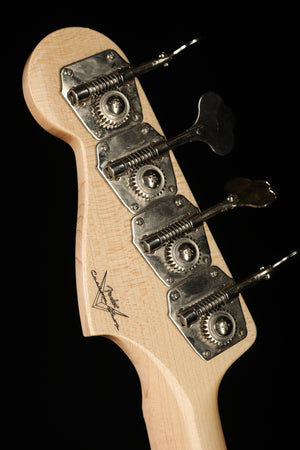A hand-wound '57 P Bass pickup delivers perfect vintage low-end thump and is wired to master volume and tone controls. Other features include a vintage-accurate single-ply gold anodized pickguard, four-saddle vintage-style bass bridge, vintage-style tuning machines, bone nut and a disc string tree. Includes deluxe hardshell case, strap and certificate of authenticity.