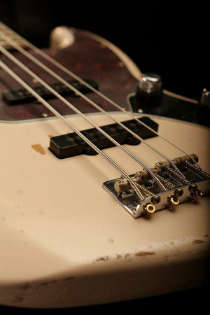 Loaded with a pair of vintage style American made Pure Vintage '64 Jazz bass pickups that provide the original era Fender tone with clear articulation, clear low end definition and up front mid range punch. The vintage accurate stacked concentric controls shape the pickups volume and tone as well as allowing the pickups to be blended in any ratio. Slim profile 7.25" radius, 20 fret C shaped Jazz neck is super fast to play with a nitrocellulose lacquer finish with a 1.5" nut. Threaded steel barrel saddle bridge.