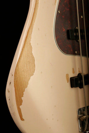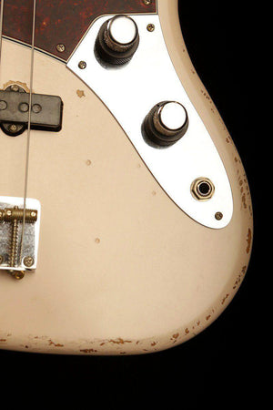 Shell Pink is one of the rarest of Fender's Custom Colour finishes from the 60's and Fleas Jazz bass is quite possibly the only one in existence. The Signature Flea bass faithfully recreates the exact shade as it exists today in nitrocellulose and then it has been "Road Worn". A special neck plate engraved with Flea's own artwork commemorates the inspiration behind the instrument.