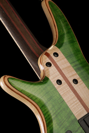 The combination Flamed Maple/Bubinga top enhances the striking appearance of the signature SR body shape, while the Ash body supplies a pleasant brightness and rich sustain.