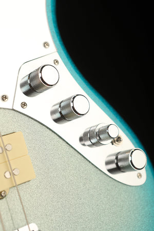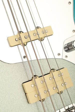 From the dazzling Sky Burst Sparkle to the gleaming chrome hardware and mirrored pickguard, every detail on this Jazz Bass echoes Blu's bold artistic vision. The offset ash body is chambered to keep this bass as lightweight and comfortable as possible. The satin finished maple neck, bound 9.5” rosewood fingerboard and vintage tall frets provide smooth playability. The Custom Blu DeTiger Fireball® bass humbucker and Player Plus Noiseless™ Jazz Bass Pickups fuse vintage charm with modern punch. The bass also includes an 18V Player Plus preamp with 3-band EQ and active/passive toggle, great for sculpting your tone and ideal for capturing the funky snap and growl that defines Blu's sound.