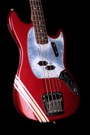 Original competition stripe Mustangs are highly desirable and do not come up for sale very often. This bass is completely original with a 1971 neck stamp and 1967 pot date codes. It is light and plays great. The pickguard has 'gassed off' after years of use which has caused it to fade and shrink so extra screws have been added in the past. This doesn't affect the playability at all and it sounds great. A replacement pickguard can be sourced if you prefer and the original can be kept with the bass. Non original case