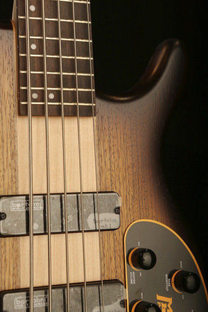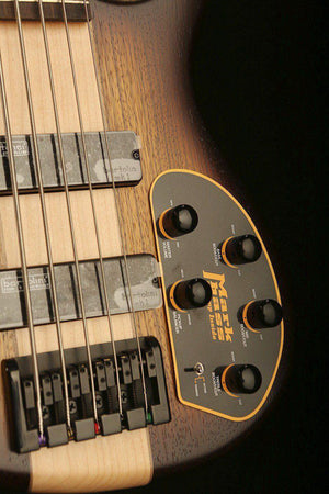 Solid Ash body, slim profile maple neck with rosewood fretboard. Dual soapbar pickups running through the new "Markbass" onboard active preamp. Big rich fat tones and a great looking satin burst.