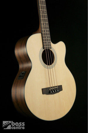 This acoustic bass from Cort sets the standard for value for money. Features a solid spruce top, mahogany back and sides. Fishman pramp. The tone is excellent with true bottom end that you just dont expect from a bass at this price. Excellent playability...and did we mention the price