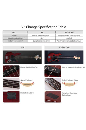 Constructed with a Mahogany body, the V3 sounds sweet and warm. Maple neck with rosewood fretboard, Marcus Miller designed pickup set running through an active 3 band preamp system. Switchable from active to passive with a passive tone control as well as the onboard preamp.