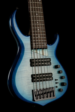 The M7 features a flamed maple top on an alder body with a gloss finish. Maple neck and ebony fretboard. The M7 is designed to produce any tone that the players desire with the SIRE Heritage-3 preamp active/passive option and with humbucker pickups with individual setting options (single, humbucker, and serial-parallel).