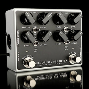 The upgraded Microtubes B7K Ultra features all the versatility and sonic possibilities of the first version plus: (1) Single user loadable cabinet simulation impulse response. (2) Micro-USB B port to connect to PC/Mac to load a different Virtual Cabinet through the Darkglass Suite. (3) 3.5mm headphone output with cabinet simulation. (4) Balanced XLR output with switchable cabinet simulation. Aux in