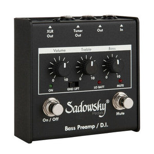 The Sadowsky Outboard Bass Preamp/DI Pedal contains the same famous circuitry built into every Sadowsky bass. Housed in a small footpedal box for use on the floor, it measures just 4.5" x 4.5" x 2.25" and weighs 1.5 pounds.