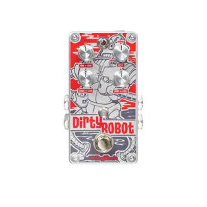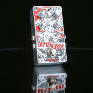 The Dirty Robot is a unique synthesizer emulation pedal for guitar and bass. Two different synth voices are at your disposal for creating wild sound textures using a standard guitar or bass without the need for any special pickup. V1 gives you warm analog synthesis with subtle to extreme envelope sweeps just like classic synths from the undefined’s and 80s. V2 provides a vocal formant synthesis effect that can be used for vocoder emulation or talk box style effects. Using the Dirty Robot’s exclusive 360 degrees Drift knob, you can blend Square Wave with Octave, and Sub synthesis soundscapes. The built-in chorus and vibrato effects give Dirty Robot unparalleled  versatility and make having one the next best thing to putting an actual guitar synth on your pedalboard.