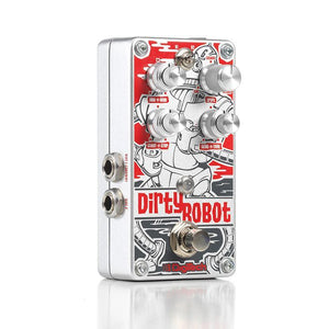 The Dirty Robot’s effects are complimented by stereo ¼” inputs and outputs for routing flexibility, constant high voltage rails, a bi-color status LED indicator and true bypass circuitry. With its compact size, vacuum-style footswitch and striking graphics the Dirty Robot furthers DigiTech’s evolution in pedal design.