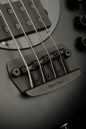 The Bongo represents everything a modern bass should be: well-balanced, comfortable, resonant, and expressive with effortless playability. The double-cutaway basswood body design is of superior construction and, along with a 24-fret neck, offers unimpeded access for high-register two-octave fretwork. The Bongo is available with two Ernie Ball Music Man proprietary humbucking pickups, a 4-band EQ, Neodymium magnets, and an 18V active preamp that delivers a powerful combination of unparalleled tonal diversity.