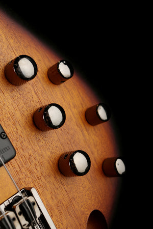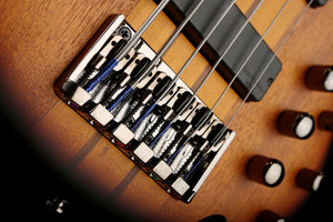 From the Ibanez Bass Workshop, the Portamento SRF706 takes fretless to another level. The SR Portamento features 5-piece Maple/ Bubinga through-neck for increased sustain and superior tone. Extended range 30 fret Panga Panga fingerboard with side line markings and dots. Adding another voice to the bass it has a Aero Silk Piezo Bridge System as well as dual Bartolini soapbar pickups and active 2 band preamp. On the back of the bass you are able to adjust the piezo volume of each string for the perfect balance. The EQ section incorporates the controls of the Bartolini pickups with the AeroSilk Piezo system. Controls include a Master volume, balance and bass & treble controls for the Bartolini MK-1 pickups and a Master volume and a tone control for the Piezo system.