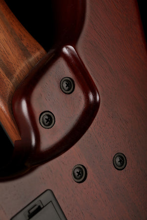 A Rosewood fretboard with offset position markers, caps a 5pc Jatoba/ Bubinga neck with a contoured neck heel that creates a deep neck joint with unfettered access to the upper fettered access to the upper frets.