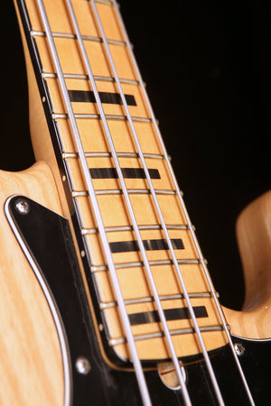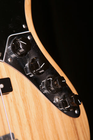 2011 Fender American Deluxe Jazz Bass in a gorgeous natural ash finish with a smooth, fast maple neck. This is the classic J-Bass feel and tone—enhanced with the modern American Deluxe upgrades: noiseless pickups, active/passive versatility, superb build quality and killer clarity.