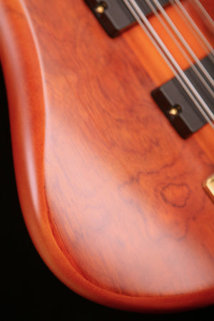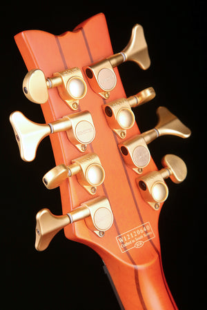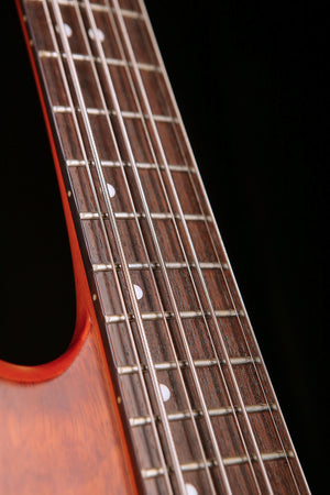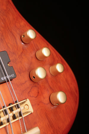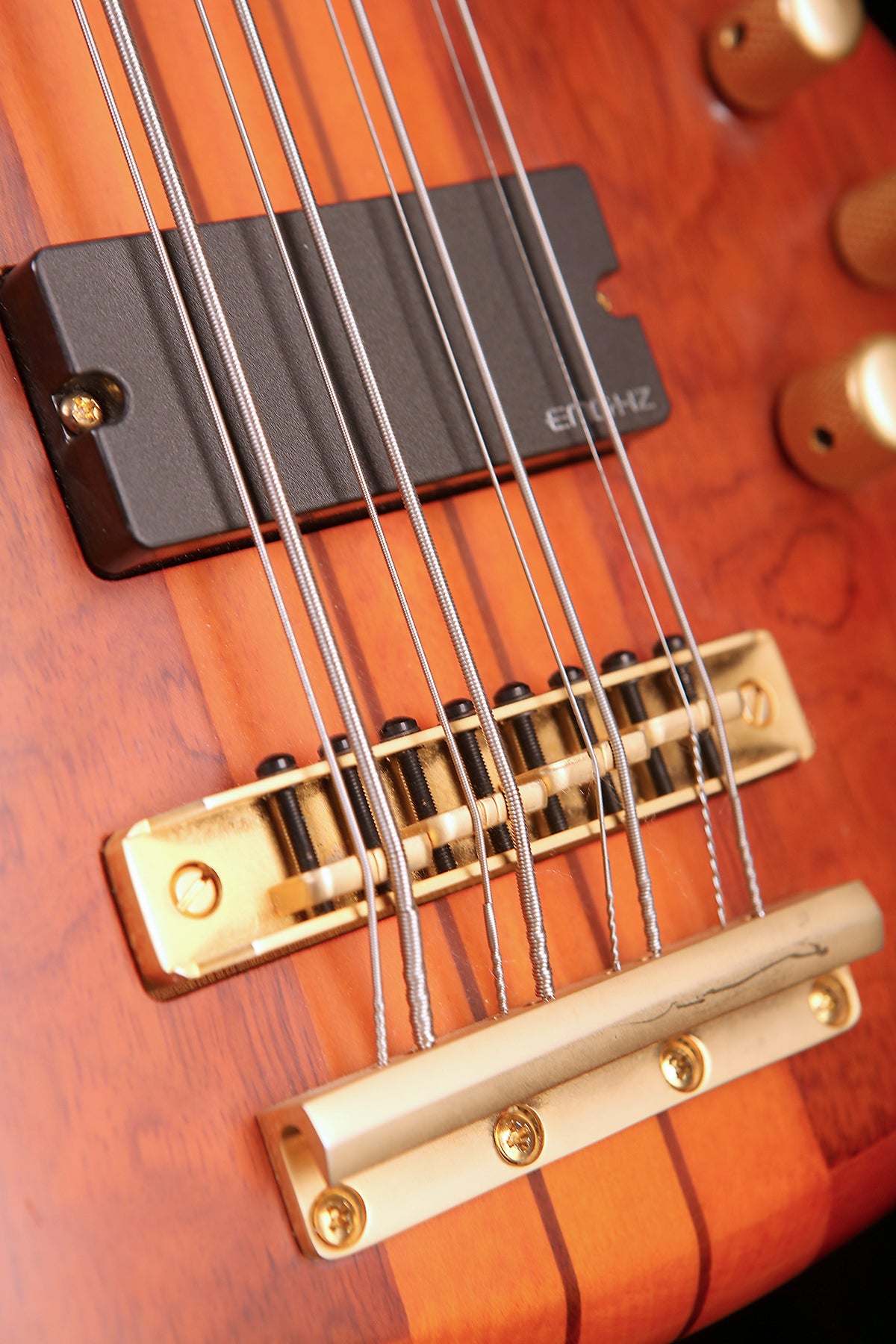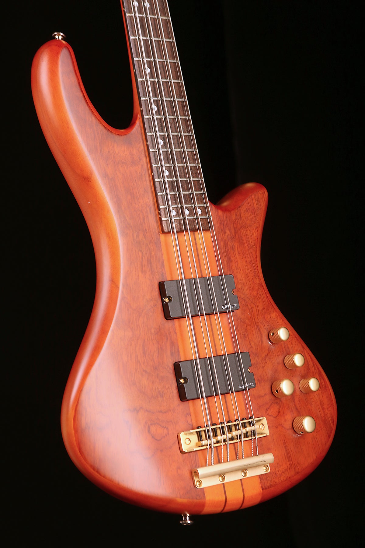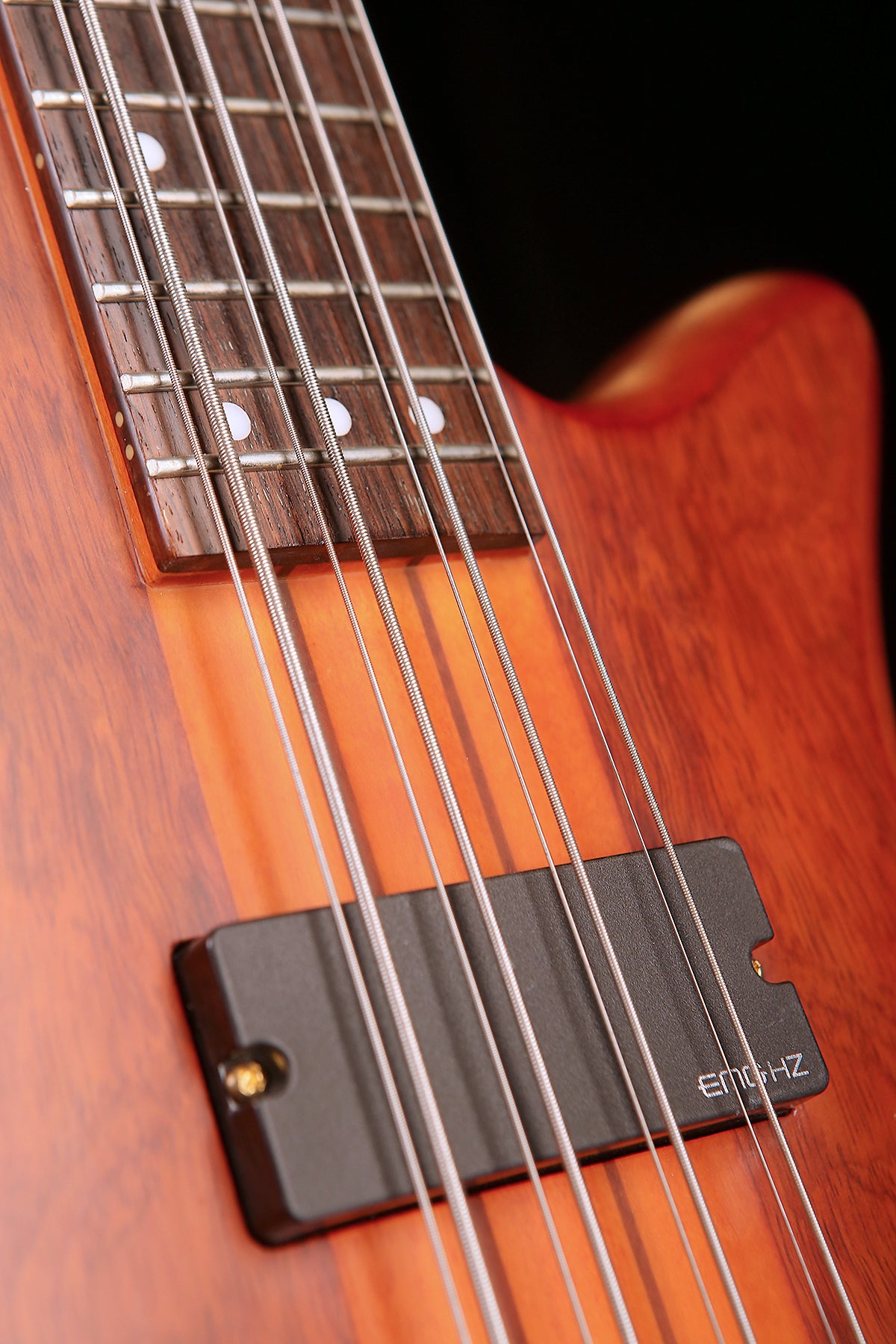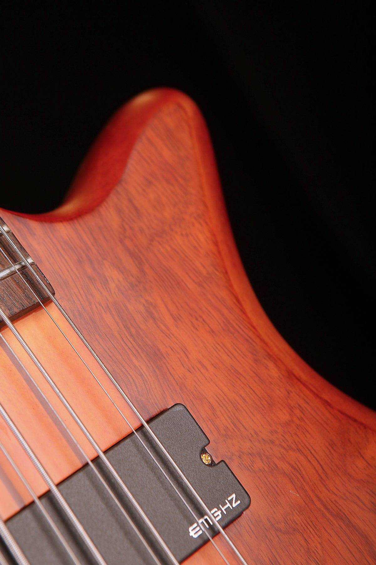 Features include a mahogany/walnut body, neck-thru construction, EMG-HZ pickups, and an active 3-band EQ for powerful tone shaping. Plays smooth, sounds huge, and looks incredible.
