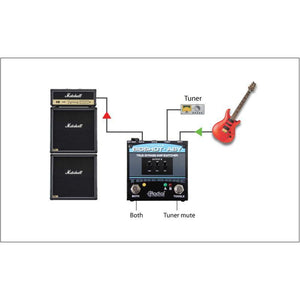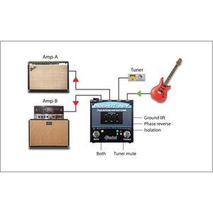 Designed for the purist, the Radial BigShot ABY is an ultra compact, 100% passive foot switch that provides true bypass ABY amp switching capabilities with A or B toggle and A + B combine functionality. This assures the guitar signal is routed directly to the amp without any buffering, loading or tone altering circuits.