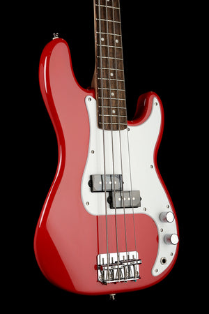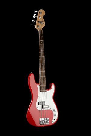 The Squier Mini Precision Bass® is the perfect companion for players seeking a reduced-size instrument with classic styling and familiar Fender® tone. Highlights include a thin and lightweight body, a short-scale neck with an easy-to-play “C”-shaped profile, a Squier split single-coil pickup with volume and tone controls for sonic variety, and a hardtail bridge for solid tuning stability.
