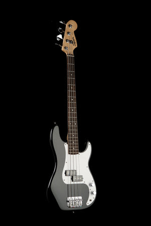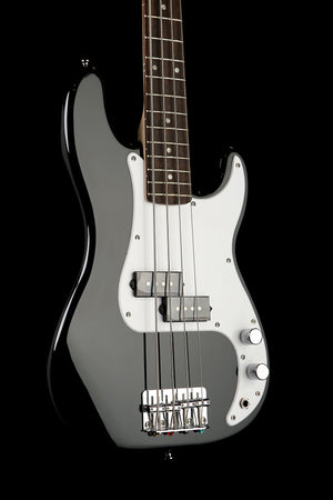 Model Name Mini P Bass®, Laurel Fingerboard, Black Model # 0370127506 Series Bullet Body Poplar Body Finish Gloss Polyurethane Body Shape Mini Precision Bass® Neck Material Maple Neck Finish Satin Urethane Neck Shape "C" Shape Scale Length 28.6" (726 mm) Fingerboard Indian Laurel Fingerboard Radius 9.5" (241 mm) Number of Frets 20 Frets Size Narrow Tall String Nut Synthetic Bone Nut Width 1.60” (40.6 mm) Position Inlays Pearloid Dot Truss Rods Head Adjust Neck Pickup Split Single-Coil Precision Bass® Controls Volume, Tone Pickup Switching None Pickup Configuration Split Single Coil Bridge 4-Saddle Vintage-Style Hardware Finish Chrome Tuning Machines Die-Cast Sealed Pickguard 1-Ply White Control Knobs Knurled Flat-Top Strings Nickel Plated Steel (.045-.105 Gauges)We offer Afterpay, Zip Money or Studio 19 Rentals