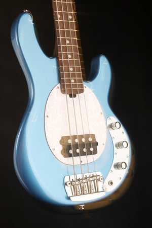 The Sterling by Music Man short-scale StingRay bass is the newest addition to the StingRay collection, offering the iconic design with a short-scale makeover for the first time. The new short-scale bass features a 30" scale for easier playability, passive boost, and a Sterling by Music Man humbucking pickup with higher output neodymium magnets and a 3-way rotary switch. The pickup configuration includes parallel, true single-coil, and series modes.