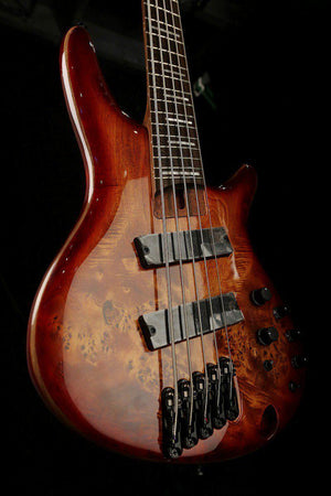 With its multi-scale design, the SRMS805 creates an "alive" open tone and playing comfort. The ergonomic construction coordinates with the player's hand angle as it moves up and down the neck, facilitating a quick, smooth playing action. On the 5pc Jatoba/Walnut neck, the rigid and musical hardwoods are set against one another to provide a thin neck with reliable long-term harmony and the Wenge fretboard on the neck brings a tight response. The neck end adjustment is easy and saves time to loosen the strings.