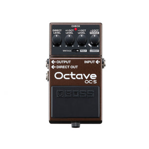 Fusing classic BOSS octave tones with the latest tracking technologies, the BOSS OC-5 sets a new standard in octave pedal performance. Vintage mode provides a spot-on recreation of the legendary mono OC-2 from 1982, while Poly mode offers numerous enhancements for extended-range playing. And with the addition of an octave-up feature, a span of three octaves is now available for creative exploration. From fat, low mono sounds to octave-shifted chords and more, the OC-5 delivers the widest range, finest sound quality, and best playability in any octave stomp to date.
