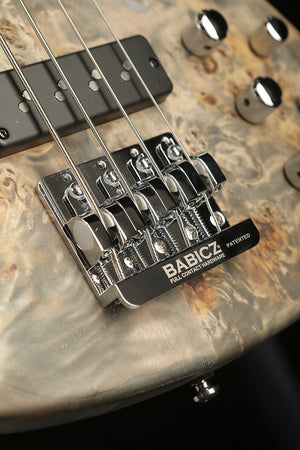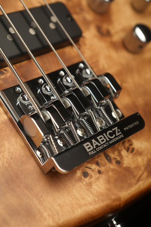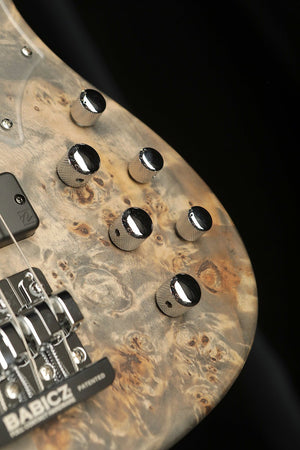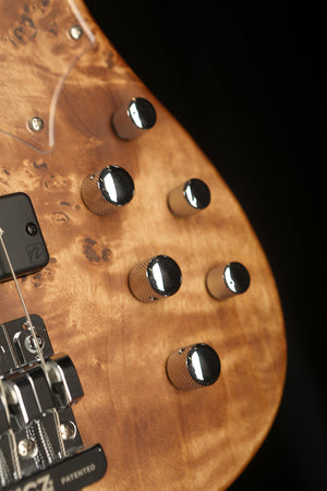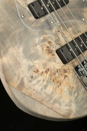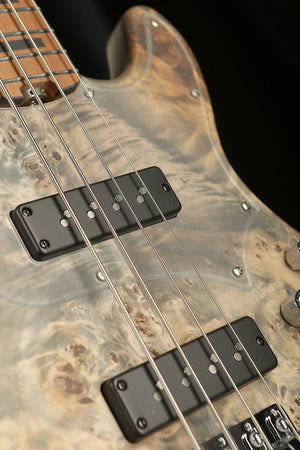 The Cort GB Modern is a brilliant piece of modern design featuring state of the art pickups and electronics in combination with high quality craftsmanship and design. The intension was to build an ultra light modern bass and the results are excellent. By combining a Paulownia body, capped with a Poplar burled top results in a super light weight body. The Roasted Maple neck also reduces weight whilst delivering a super rigid and responsive neck. Hipshot Ultralight tuners and a Babicz bridge reduce the weight further resulting in a well balanced bass that delivers excellent ergonomics and less fatigue over a night of performing.