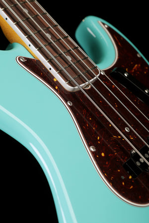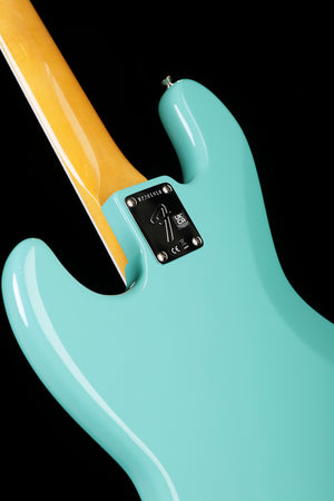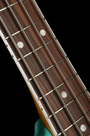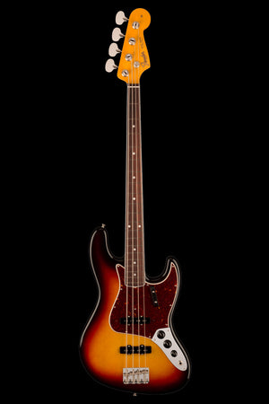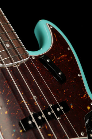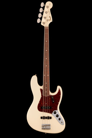 The American Vintage II 1966 Jazz Bass features a comfortable “U” shape hard rock maple neck, and it plays like a dream with a 7.25” radius round-lam rosewood fingerboard and vintage tall frets. Characteristic of production in 1966, this J-Bass® is offered with white neck binding, pearl dots, two volume controls with master tone, matching painted headstock and 4-ply tortoiseshell pickguard. The 4-saddle bridge with threaded saddles, vintage-style “lollipop” tuners and Pure Vintage ‘66 Jazz Bass pickups deliver classic thump and style.