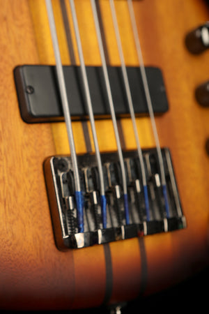 From the Ibanez Bass Workshop, the Portamento SRF705 takes fretless to another level. The SR Portamento features 5-piece Maple/ Bubinga through-neck for increased sustain and superior tone. Extended range 30 fret Panga Panga fingerboard with side line markings and dots. Adding another voice to the bass it has a Aero Silk Piezo Bridge System as well as dual Bartolini soapbar pickups and active 2 band preamp. On the back of the bass you are able to adjust the piezo volume of each string for the perfect balance. The EQ section incorporates the controls of the Bartolini pickups with the AeroSilk Piezo system. Controls include a Master volume, balance and bass & treble controls for the Bartolini MK-1 pickups and a Master volume and a tone control for the Piezo system.