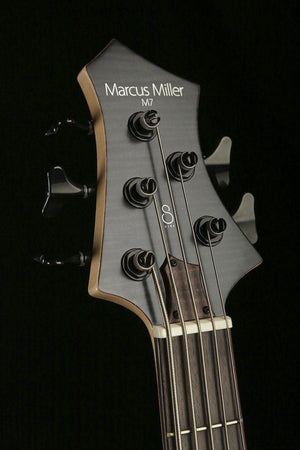 The M7 features a flamed maple top on an Ash body with a gloss finish. Maple neck and Ebony fretboard. The M7 is designed to produce any tone that the players desire with the SIRE Heritage-3 preamp active/passive option and with humbucker pickups with individual setting options (single, humbucker, and serial-parallel).