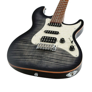 Featuring an Alder body with a  superb flame maple cap, the look is all class and the tone is pure and defined. A humbucker in the bridge position combined with two single coils in the middle and neck position give you ultimate tonal flexibility, from bold and raucous to sweet and tubular.