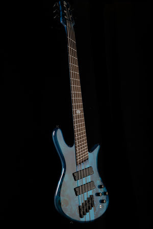 Spector’s NS Dimension Series combines iconic design with multi-scale construction, bringing a new level of playability and tonality to Spector’s dedicated legion of players. In addition to the multi-scale, neck-thru construction, the NS Dimension features a variety of premium tonewoods and cutting-edge Fishman Fluence electronics. The fully curved body is carved from lightweight Swamp Ash and features a highly figured Poplar Burl top. The 5-piece neck is constructed from Maple and Wenge for enhanced stability and eye-catching looks. The 24 fret Wenge fingerboard also features illuminating side dots, allowing players to expertly navigate the fingerboard. NS Dimension basses are available in two distinct finishes, Haunted Moss Matte and Super Faded Black Gloss.
