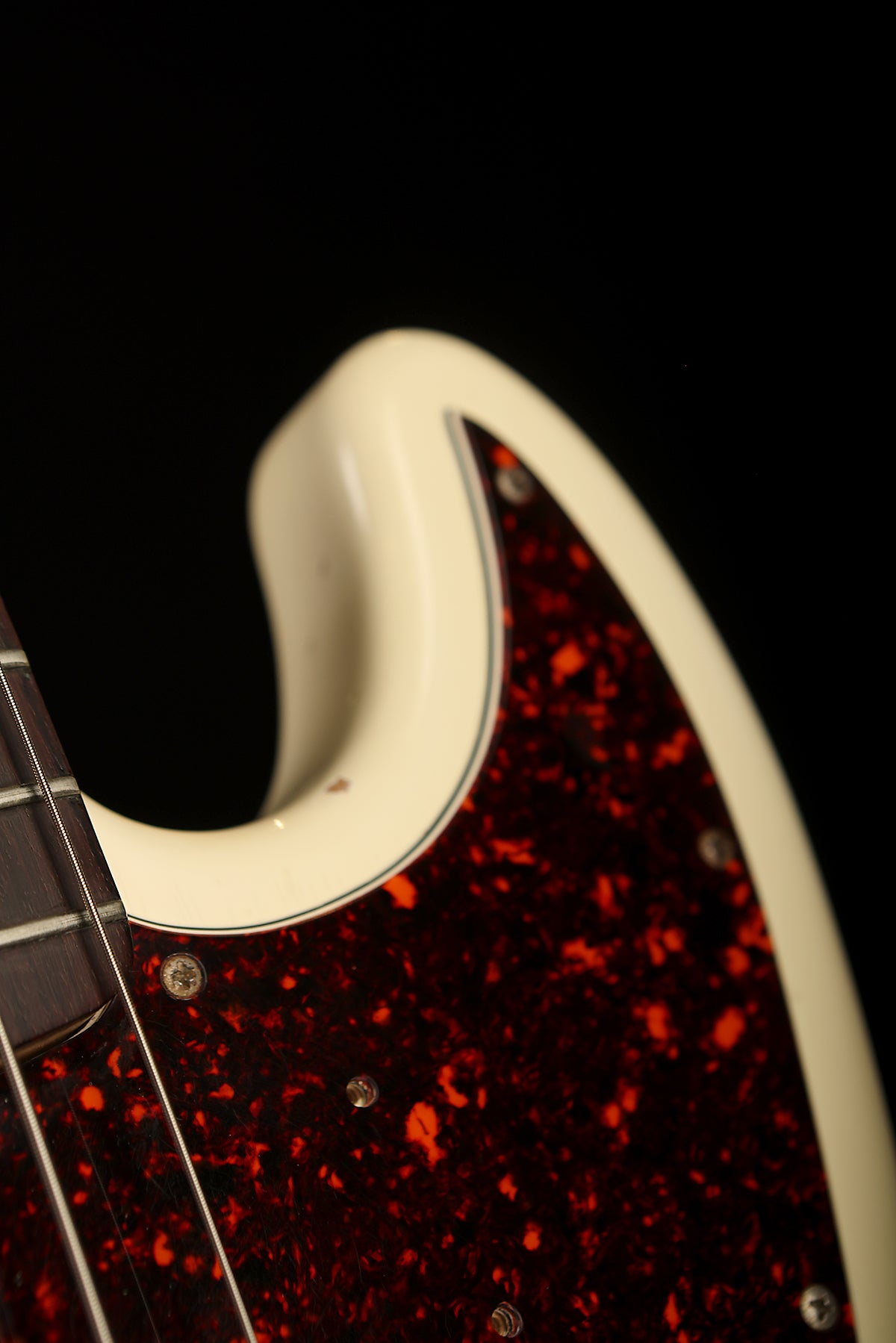 This Jazz bass is a beautiful example of the first relic instruments offered by the Fender Custom Shop. Built in collaboration with Vince Cunetto these instruments were built between 1995 and 1999 with basses being much less common than guitars. Finished in nitrocellous laquer and built as closely as possible to the original Fender's they replicate, they are great playing instruments which are also collectable and represent an excellent investment.