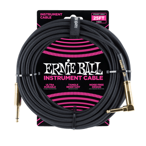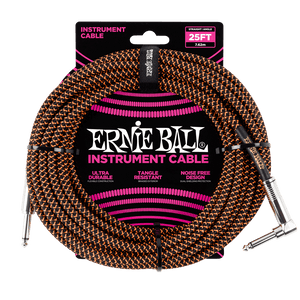 Ernie Ball instrument cables feature a high-quality design made with superior components that are built to last. Dual-conductors deliver reliably clear tone with crisp highs, tight mids, and rich harmonics. Multiple shielding materials preserve the signal with low handling noise, and the braided jacket exterior provides a tangle-resistant experience. Cable length 25ft (7.62m).