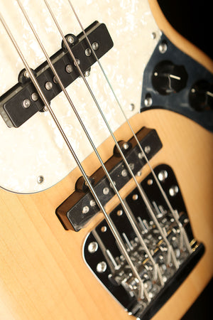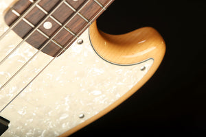 The signature bass of Chilli Beans. bassist Maika, is a groundbreaking model that combines a 30-inch scale Mustang Bass® with two Jazz Bass® pickups. Based on the standard single-coil pickup configuration of the Mustang Bass, the pickups are positioned slightly closer to the neck to capture sound at a position where string vibration is greater. This bass can express rich lows that are unimaginable from its compact size, delivering more Jazz Bass-like characteristics. The color features Aged Natural with a matching headstock. The Aged Pearloid pickguard pairs very well with the body color, creating a calm, vintage impression that matches the tonal character.