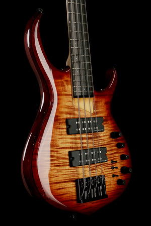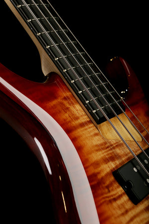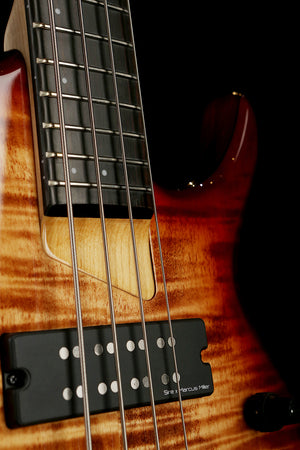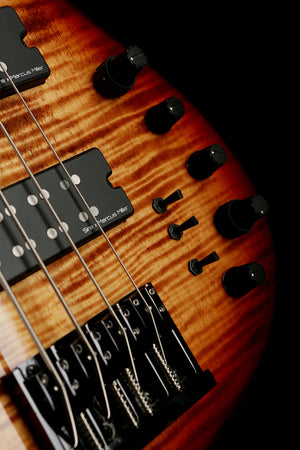 The M7 features a flamed maple top on an alder body with a gloss finish. Maple neck and ebony fretboard. The M7 is designed to produce any tone that the players desire with the SIRE Heritage-3 preamp active/passive option and with humbucker pickups with individual setting options (single, humbucker, and serial-parallel).