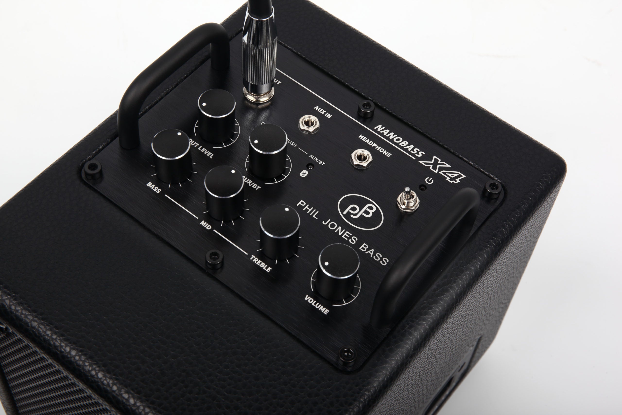 Nanotechnology breaks the sound barrier with the X4 Nanobass Multi Instrument Combo Amplifier, which is the most compact and portable combo amplifier ever designed by Phil Jones Bass for desktop and practice applications. A 35 Watt amplifier with a 4” speaker and 3 Band EQ that not only rocks with bass it will also provide dazzling tone for other instruments including guitar, ukulele, violin and electronic drums.