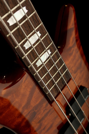 The Doug Wimbish Euro 4 Signature Model will be available in two distinct colors: Amber Stain and Black Stain – both with a high gloss finish. Additional specifications include maple body wings with genuine figured maple tops, rosewood fingerboard with mother of pearl crown inlays, gold Spector hardware, and Spector’s recently developed Legacy Preamp which offers the classic, 1980s inspired 2-band EQ.