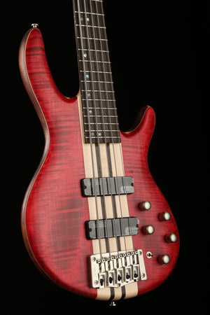The Cort A5 offers amazing specs for an incredible price. Full neck through construction, mahogany body with flame maple top. Bartolini pickups and active preamp. Satin finish. Hipshot tuners. Excellent range of tonal options and great playability.