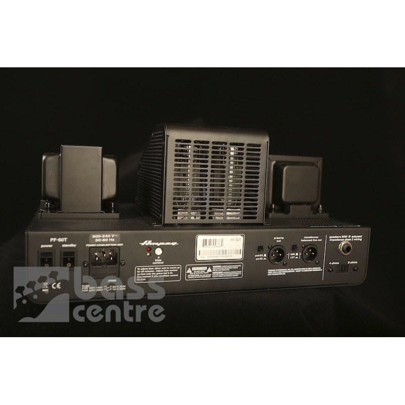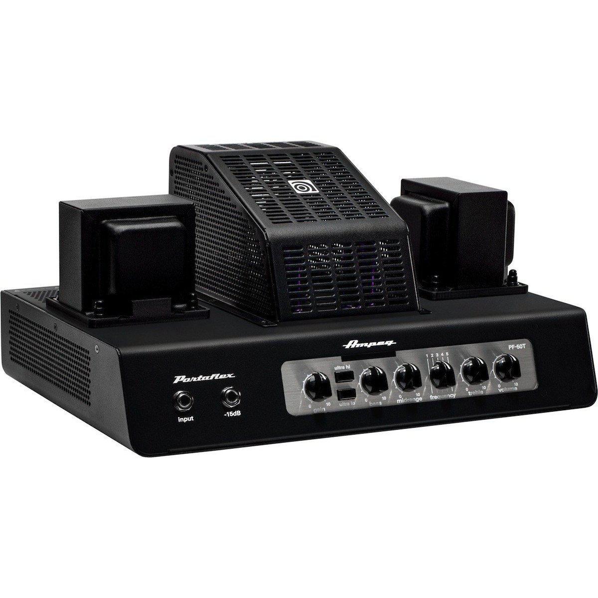 The legendary tone and portability of the all-tube Ampeg Portaflex amplifiers is faithfully reproduced in the PF-50T. This all-tube Portaflex head provides a harmonically rich and studio-worthy 50 watts of pure Ampeg tone to satisfy the most discerning bass player. Featur ing simple user-adjustable bias adjustment for easy tube replacement and pre-amp and transformer balanced direct outs for maximum versatility. Plus, no speaker load is required for silent recording or even use as a dedicated tube DI. Pair it with the PF-112HLF for the ultimate compact all-tube bass rig.