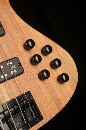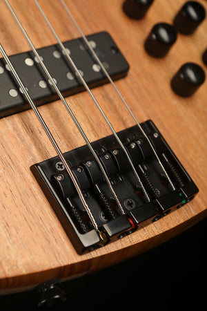 This bass has been designed from the ground up. An incredibly ergonomic body design puts the bass in the perfect playing position and delivers perfect balance. Intricate body contouring and chamfering make for a beautifully comfortable body feel. The bass is a full neck through body construction which delivers superb sustain and natural compression to its tone whilst still delivering the punch and responsiveness of a bolt on design. The 34" neck is a 3 piece Queensland Maple construction with a Sheoak fretboard. 24 Frets and a Brass nut ensure that you have definition from the lowest of notes to the highest.