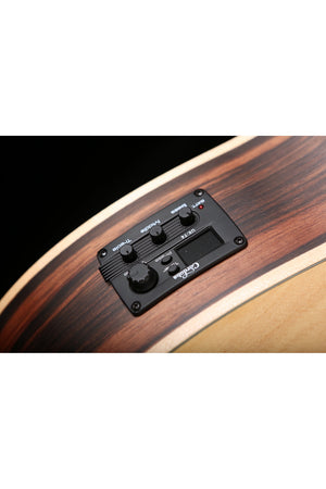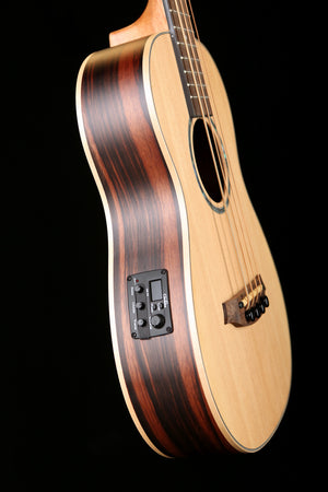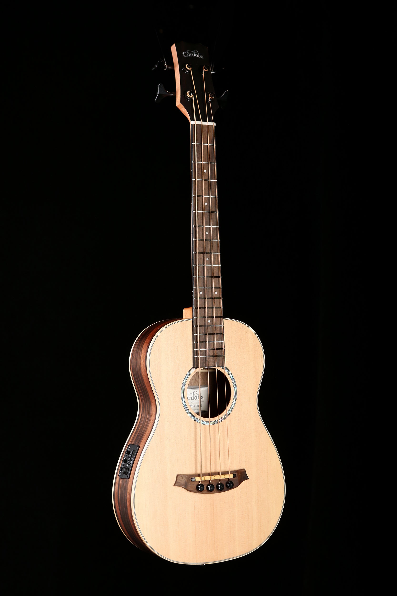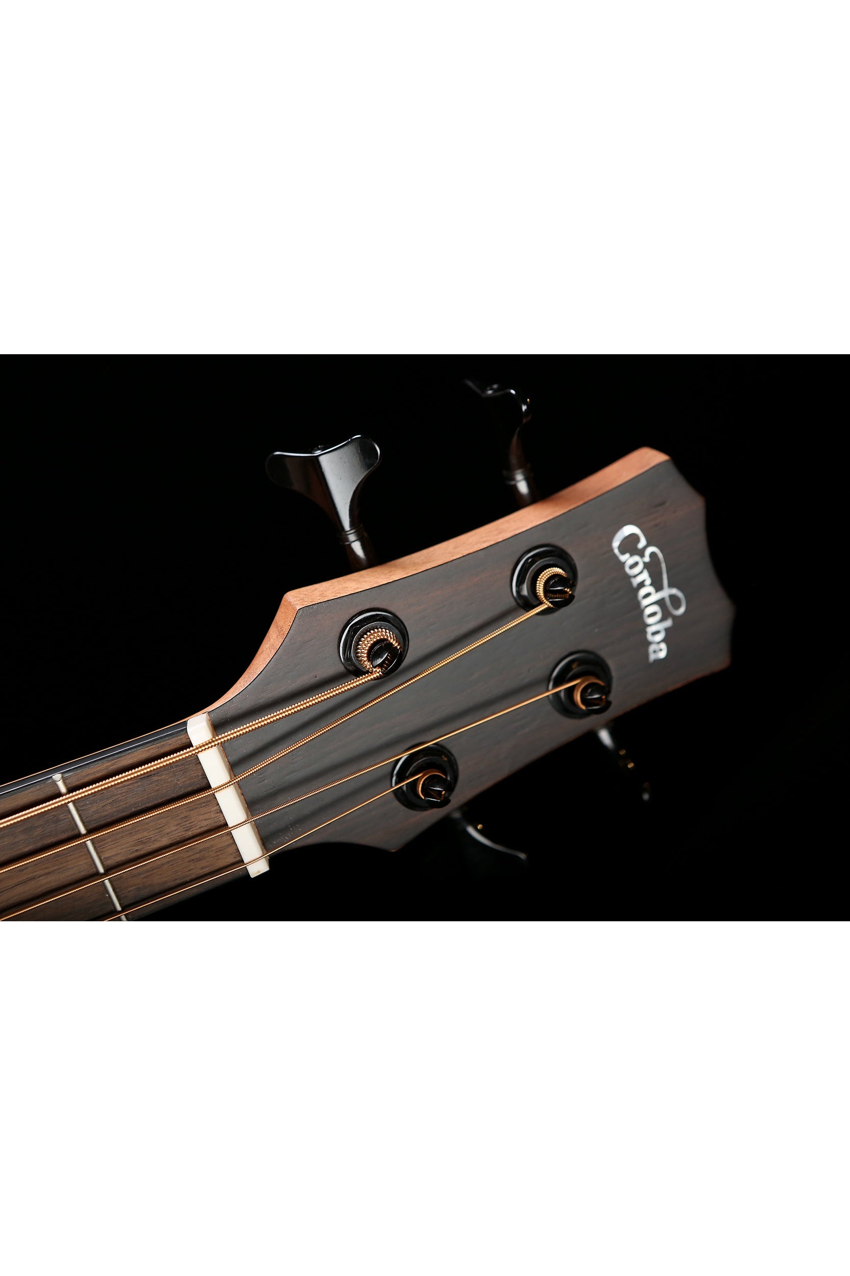 The Mini II Bass is here to expand your horizons and your registers! Based on our popular travel-sized Mini, the Mini II Bass is slightly bigger and features an extended 580mm (22 7/8”) scale length so it tunes perfectly to Standard E. Keep it acoustic and the Mini II Bass's deeper body depth will provide a well-rounded tone; use its Cordoba MB103 pickup to plug it in and you'll be surprised by this portable bass's rich, robust tone. Built with Ebony back and sides and a spruce top, the Mini II Bass MHE's unique voice is mellow, soft and balanced. Strung with nylon core, phosphor-bronze strings, the Mini II Bass feels and sounds more like a full size bass than its miniature bass counterparts. With the Mini II Bass MHE, you'll never have to leave the low-end behind!