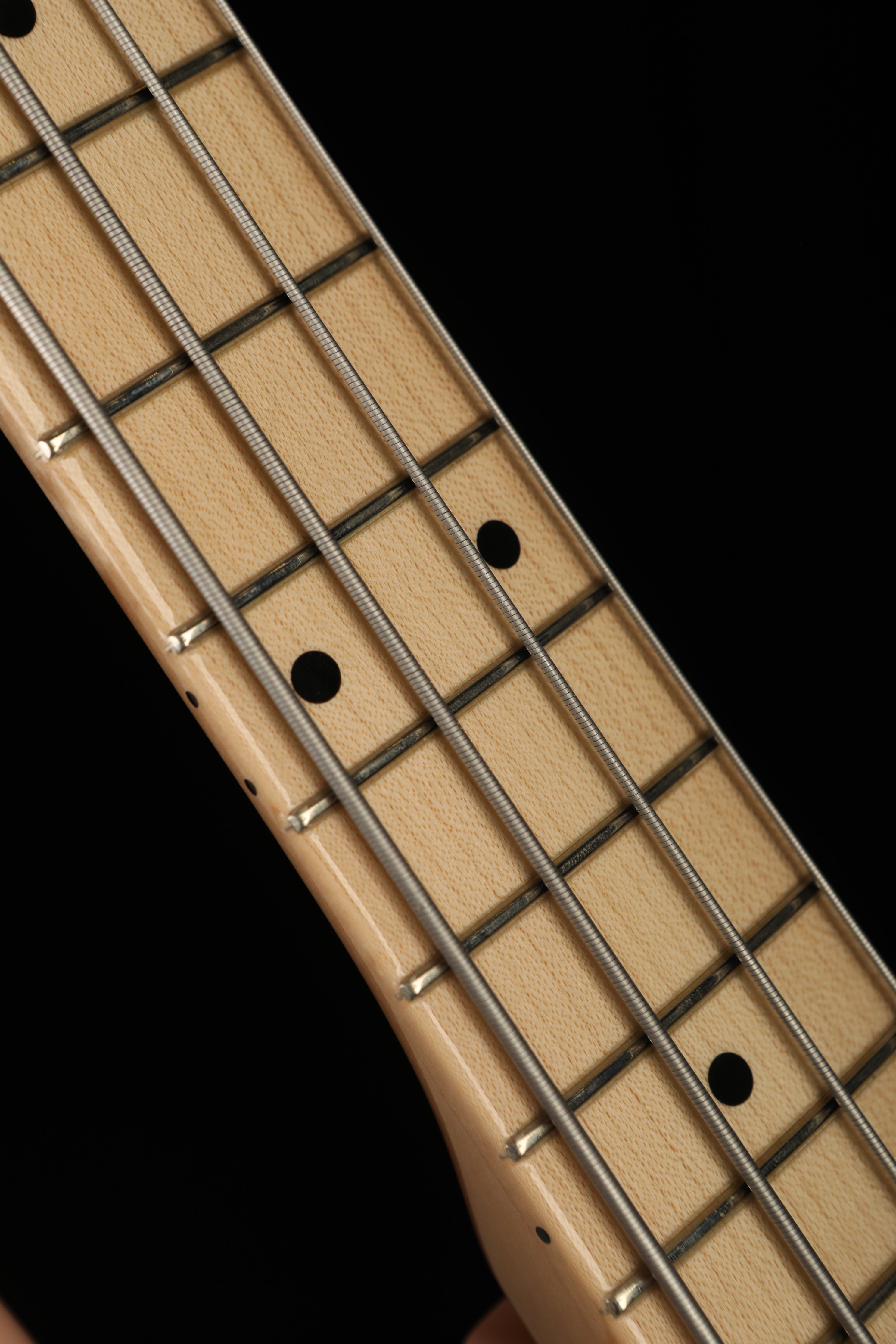 A hand-wound '57 P Bass pickup delivers perfect vintage low-end thump and is wired to master volume and tone controls. Other features include a vintage-accurate single-ply gold anodized pickguard, four-saddle vintage-style bass bridge, vintage-style tuning machines, bone nut and a disc string tree. Includes deluxe hardshell case, strap and certificate of authenticity.