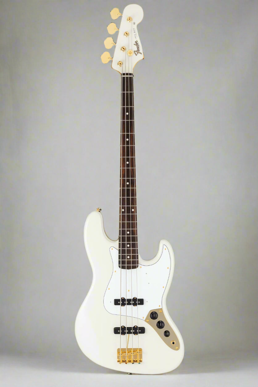 The Made in Japan Traditional 2025 Collection '60s Jazz Bass® is a special model based on the Made in Japan Traditional Jazz Bass® with a look exclusive to 2025. The "White Pearl" has a special pearl coating on the body and headstock that is exclusive to these products, and combined with the gold-colored hardware, you can get an even more elegant and refined sense of luxury.