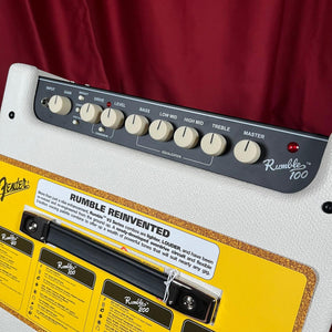 The Rumble 100 features a 100 watt power stage, single 12" speaker, soft touch radio style knobs, switchable overdrive circuit, 3 voicing options, removable grill, ported cabinet design and its super light weight!!!
