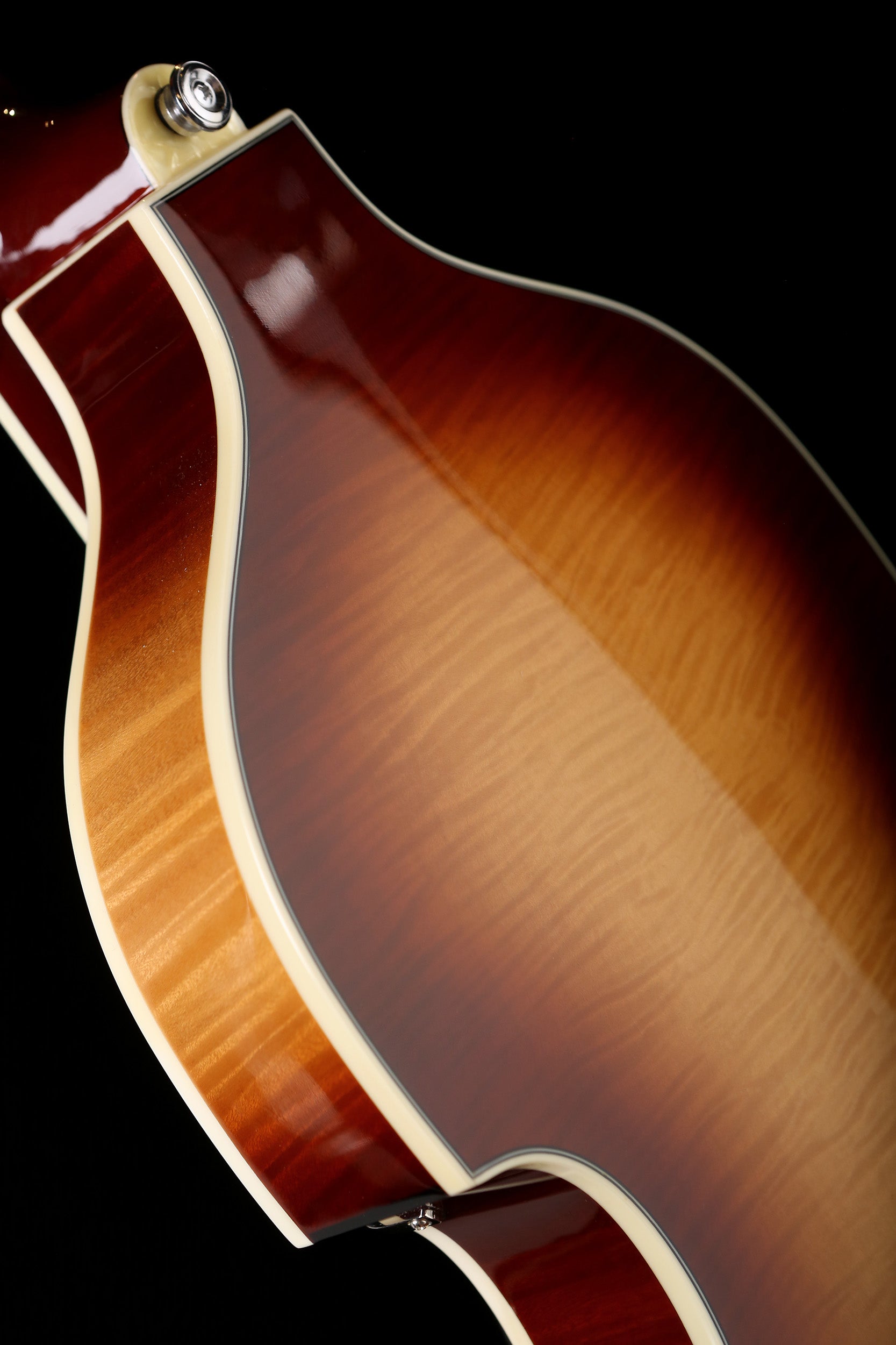 Featuring a sustain block inside the body to give modern, deep-resonating bass sounds while still retaining the original Hofner Beatles bass sound. With a short scale of 30" and the small violin bass body it is one of greatest electric bass guitars ever made.
