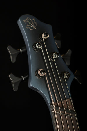 The bass features a 5pc Maple/Walnut neck through construction with Graphite reinforcement rods and a Panga Panga fretboard with durable Stainless Steel frets.