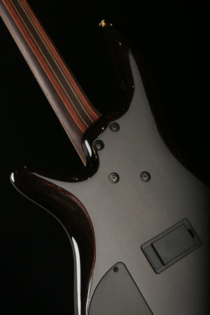 The SR2600 CBB features a stunning Poplar Burl body with a gorgeous natural binding on the top and side, creating exotic and boutique feels on SR’s beautifully arched body. The Mahogany body delivers a warm tone with rich resonance. The Atlas-15 pc Panga Panga, Maple, Paduak, Purpleheart and Walnut neck provides extreme rigidity, tonal clarity, increasing sustain, and superior note attack with the Panga Panga fretboard.
