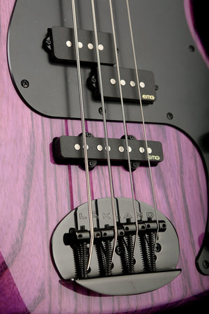 Lakland's Skyline 44-64 GZ PJ bass delivers a classic look with serious metal credentials. Featuring trans purple finish, black hardware, Ebony fretboard, Pearl and Abalone fingerboard inlays and a black anodized aluminum pickguard, it is a unique looking bass.