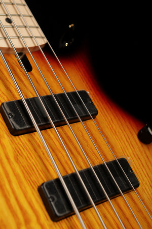 Simply an amazing bass for the money. The 5501 uses a 35" scale for more balanced tension across the board and for better B string pronunciation. Loadedwith twin Bartolini MK1 soapbar pickups and a 3-band preamp, The controls on the 55-01 are Volume, balance, treble, mid and bass control, the master volume pot can be pulled to bypass the active preamp. Solid Ash body, compound radius maple neck and board, graphite reinforced and string through body option on the bridge. Hipshot light weight tuners,deep Lakland cutaway on the high register side of the neck allowing easy access to ALL 22 frets up the neck.These basses are Plek'd for absolute precision fret heights so they set up low and play like a dream. And we have said it before: 35-inch scale necks make for killer low B's! That is why the low tones on Skyline 5-string basses boom with piano-like clarity!