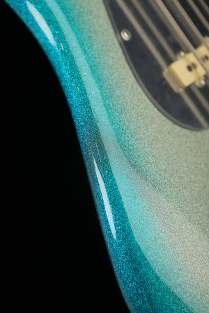 From the dazzling Sky Burst Sparkle to the gleaming chrome hardware and mirrored pickguard, every detail on this Jazz Bass echoes Blu's bold artistic vision. The offset ash body is chambered to keep this bass as lightweight and comfortable as possible. The satin finished maple neck, bound 9.5” rosewood fingerboard and vintage tall frets provide smooth playability. The Custom Blu DeTiger Fireball® bass humbucker and Player Plus Noiseless™ Jazz Bass Pickups fuse vintage charm with modern punch. The bass also includes an 18V Player Plus preamp with 3-band EQ and active/passive toggle, great for sculpting your tone and ideal for capturing the funky snap and growl that defines Blu's sound.